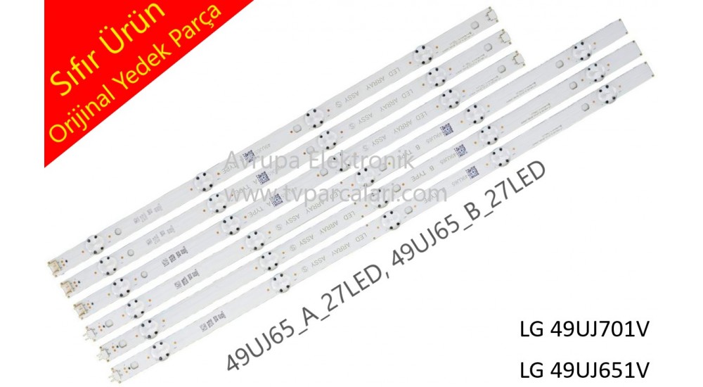 49UJ65_A_27LED, 49UJ65_B_27LED, Parça Koduyla "LG 49UJ701V, LG49UJ651V" Tv Led bar seti,